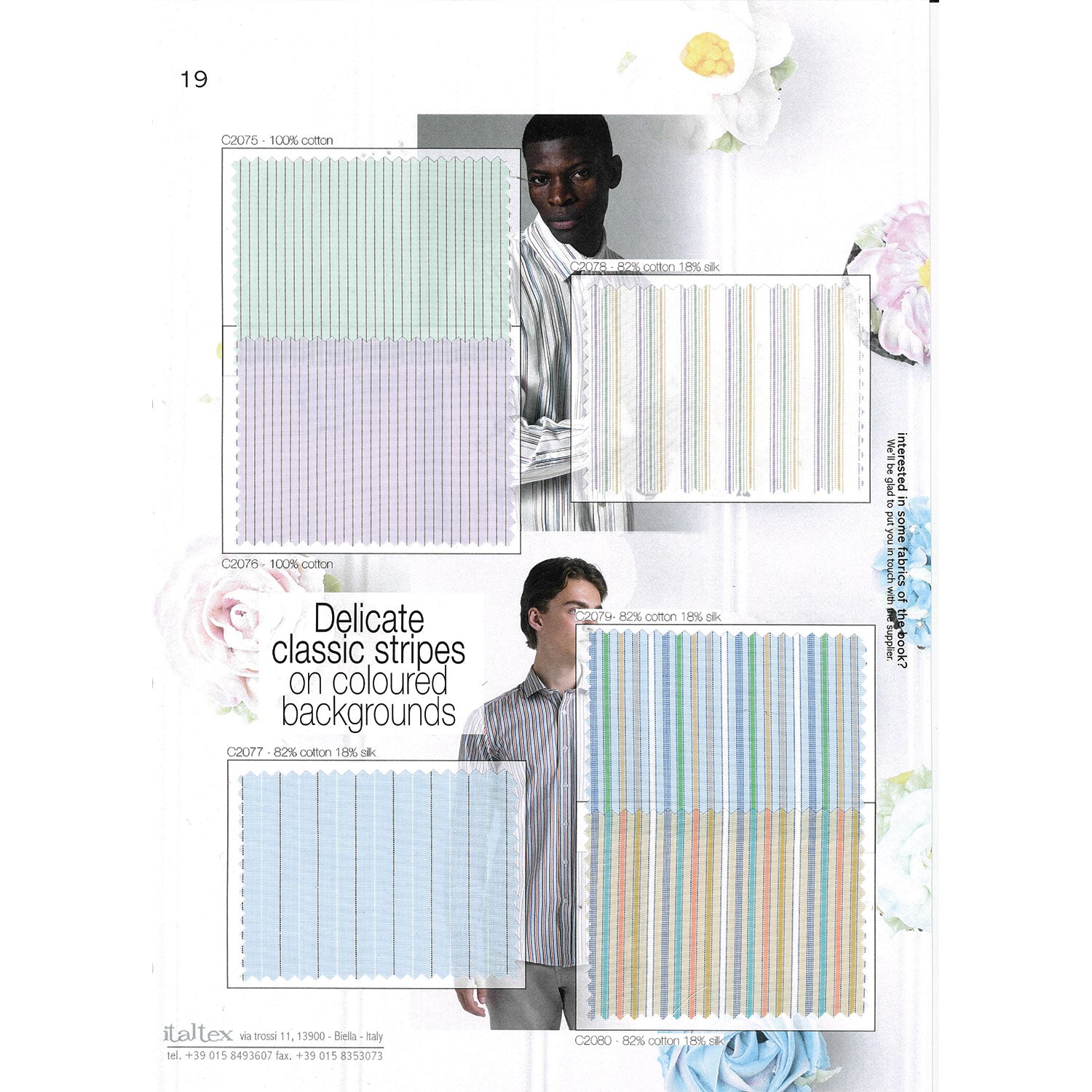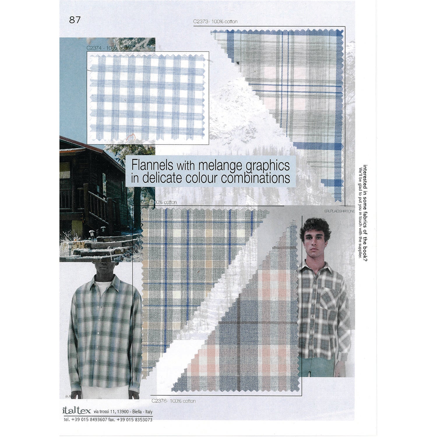It shows the new trends in colours, fibres, yarns, constructions and patterns for yarn-dyed fabrics in cotton, linen and blends.